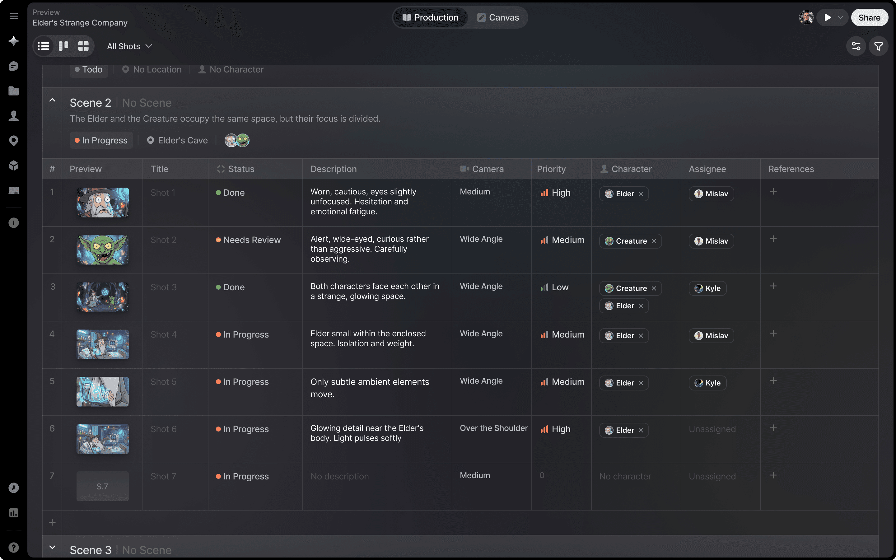 Save Characters, Props, Locations and assets to ensure storytelling consistency across episodes and seasons.