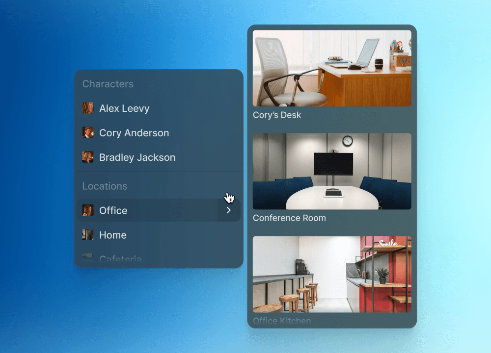 Like working on a soundstage where your sets and props are saved for use across hundreds of episodes, bring back recurring characters and locations with ease.