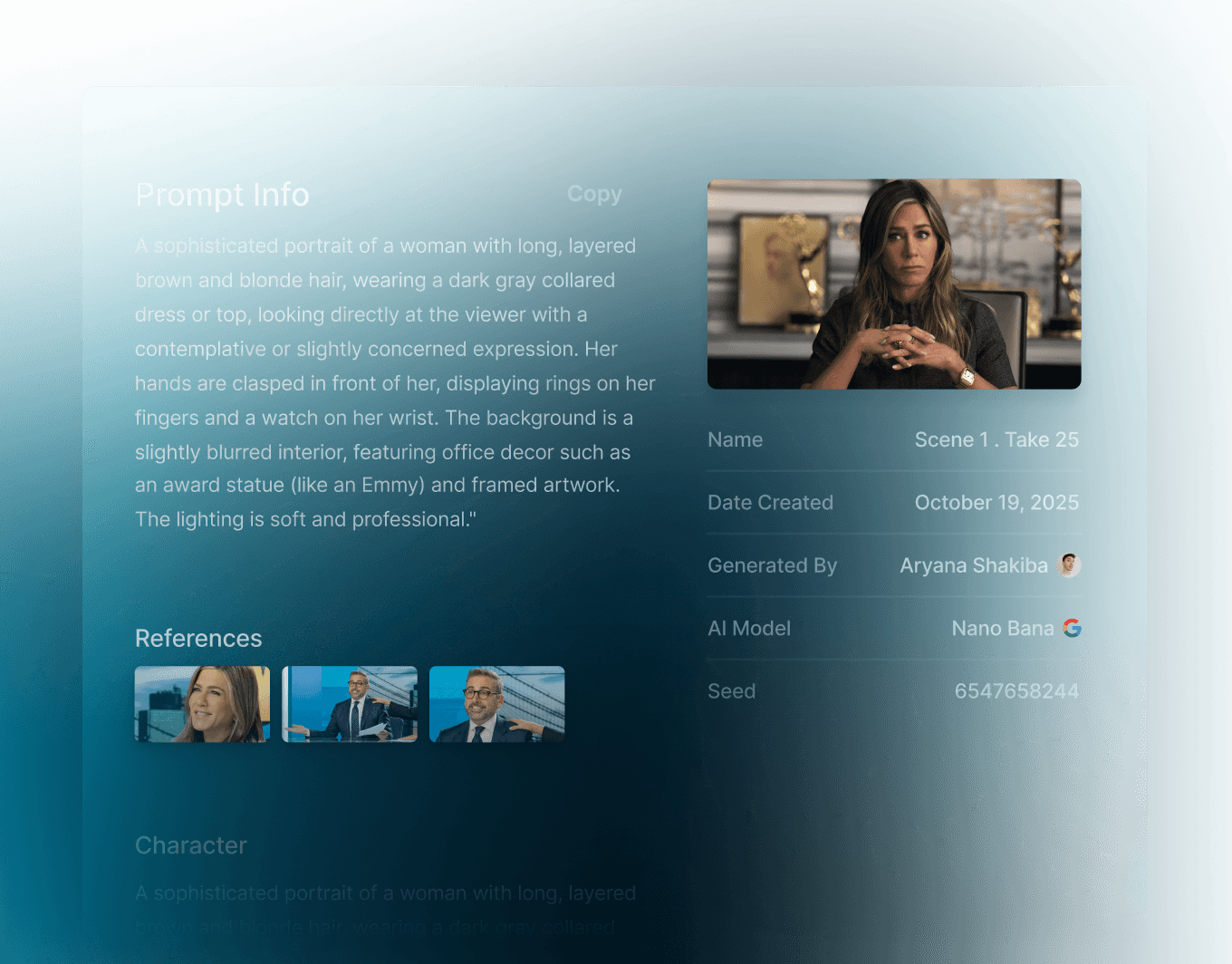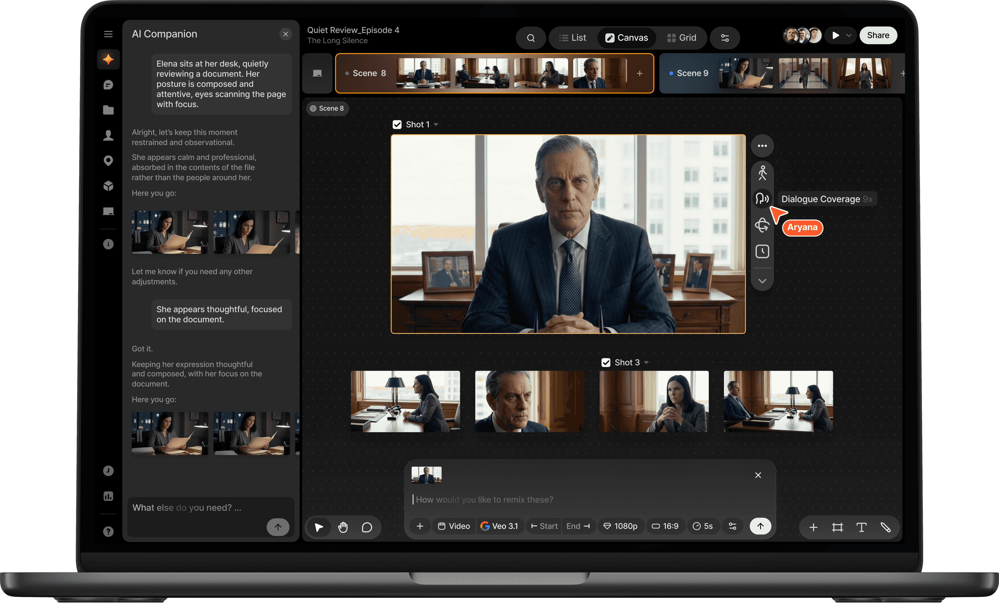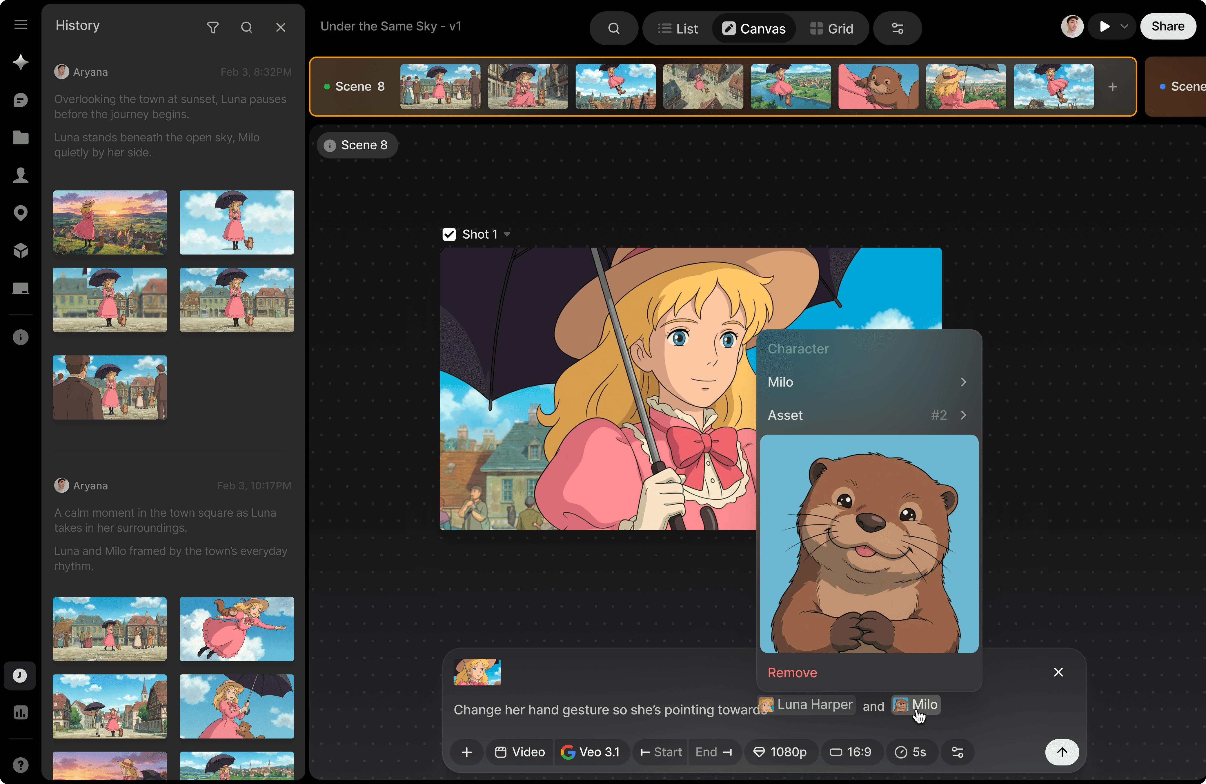 Name any character, location, prop or style in your prompt to seamlessly add them to a shot.