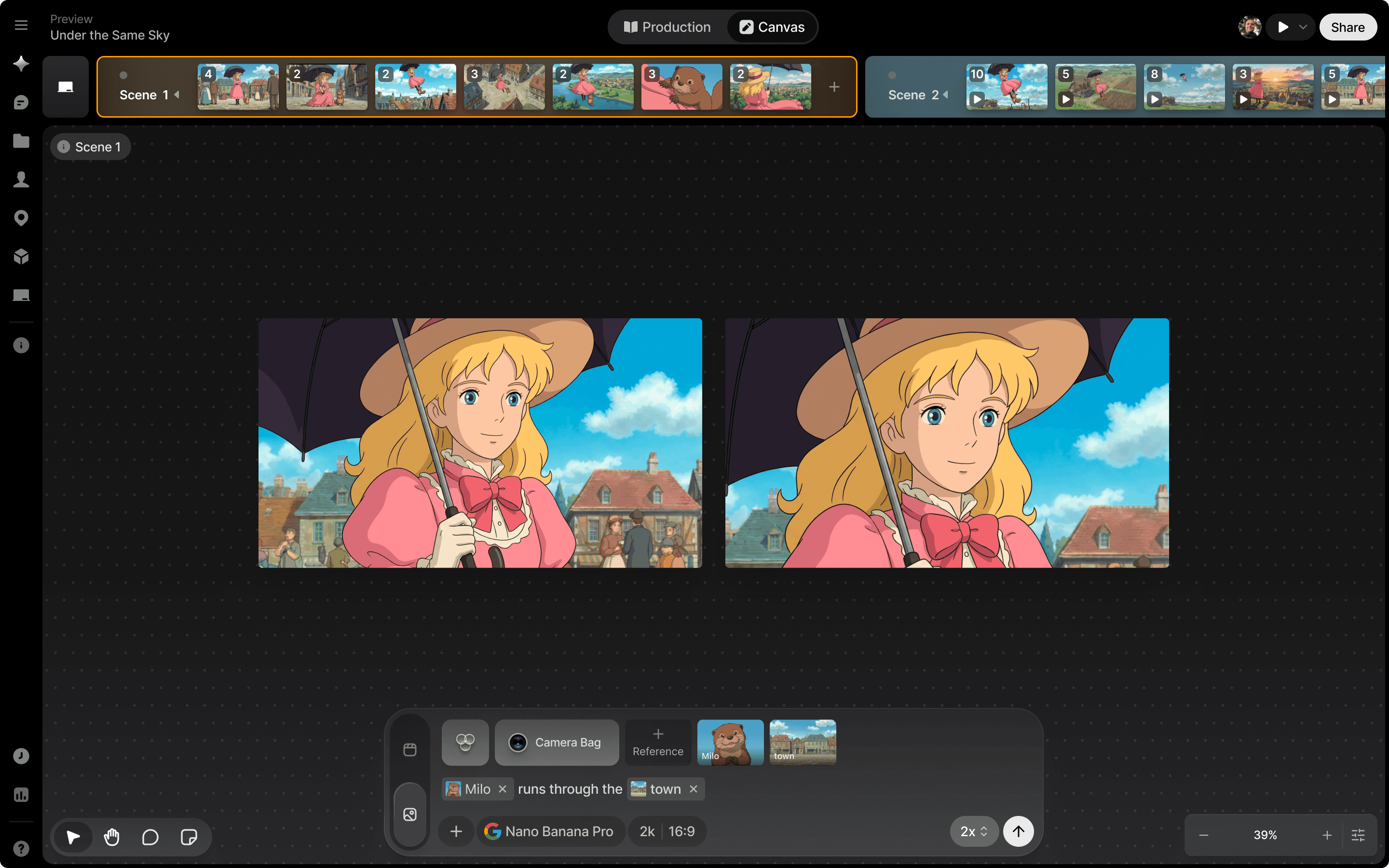 Retains your style while imagining new scenes that could happen in the future, or past, built off your chosen shot.